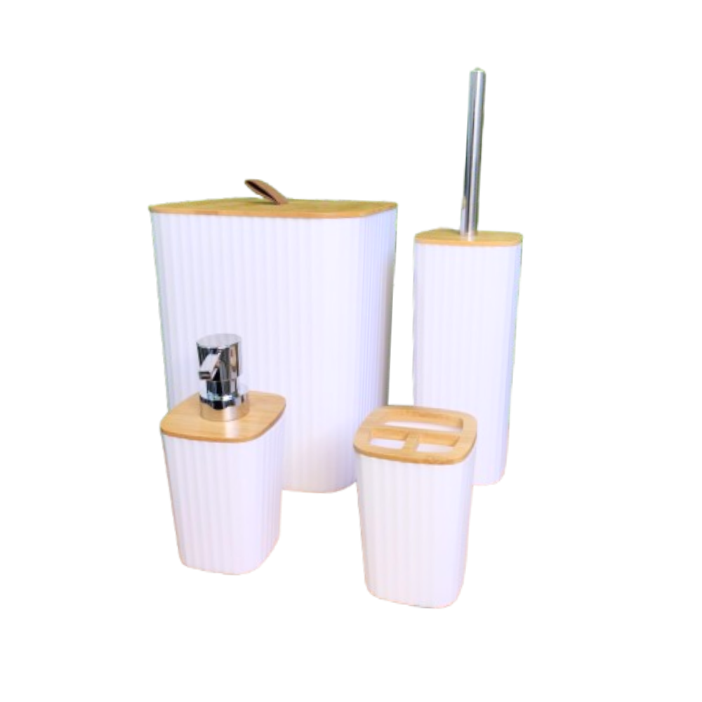 KIT BANHEIRO PLAST/BAMBU 4PCS BRANCO CX (CX-N) FLASHGOODS COMERCIO F0479